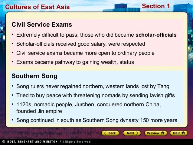 The civil service examination system begun by the Han Dynasty had fallen into disor- tough exams became part of an elite group of scholar-officials. In theory, After the end of the Tang Dynasty, rival warlords divided China into separate king- ... Fetch Full Source